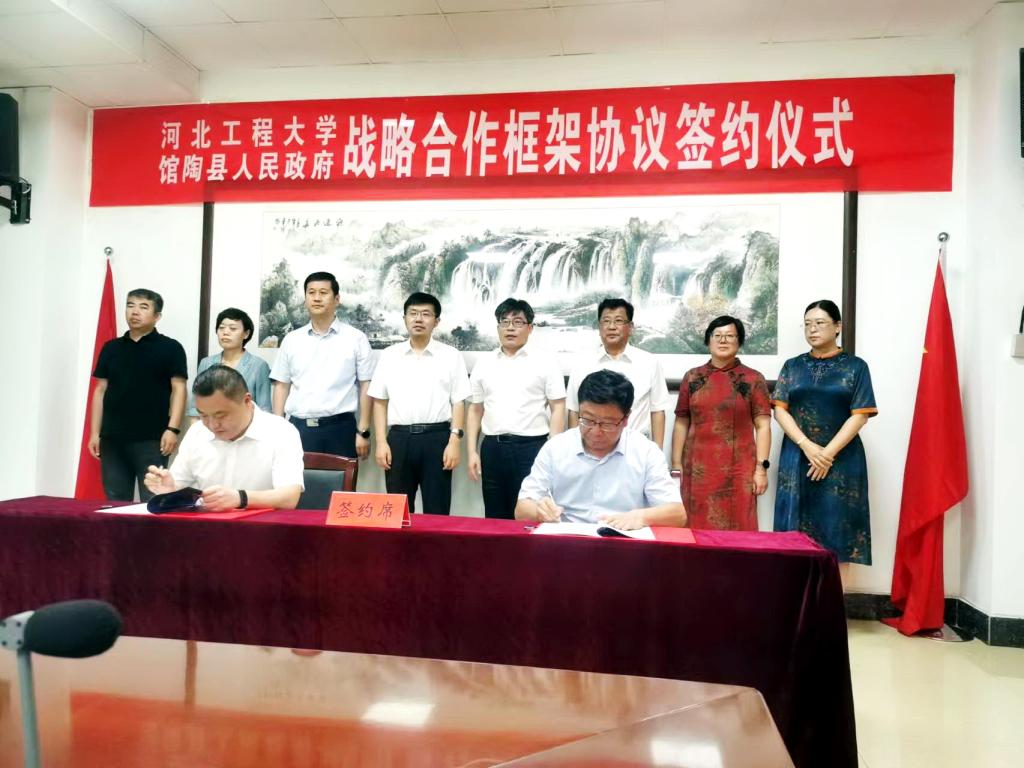 王立伟在致辞中指出河北工程大学作为河北省重点骨干大学、河北省重点支持的国内一流大学建设高校,培养了很多高端人才,是邯郸市的智库。此次战略合作框架协议的签署,标志着校县双方站在了未来合作的新起点,一定能为馆陶高质量发展提供高水平的科技人才,必将进一步发挥校政企协同创新优势,馆陶将以最好的环境、最优的服务、最佳的状态推动学校科技成果在馆陶转移转化,打造科研院所支持地方经济和社会发展的样板,实现协同创新、产教融合、合作共赢。