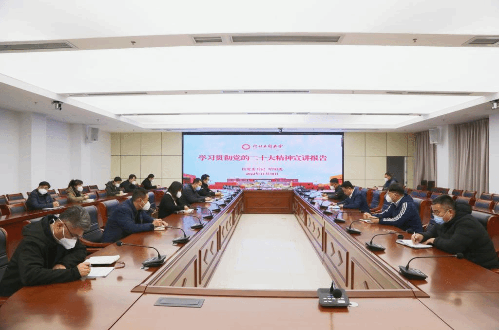 哈明虎深入阐释了党的二十大主题,系统解读了党的二十大精神的丰富内涵,对深入学习宣传贯彻党的二十大精神提出要求。他强调,学习宣传贯彻党的二十大精神,是当前和今后一个时期学校的首要政治任务,要坚持全面系统学、带着问题学、融会贯通学,持续推动党的二十大精神学习宣传贯彻走深走实。