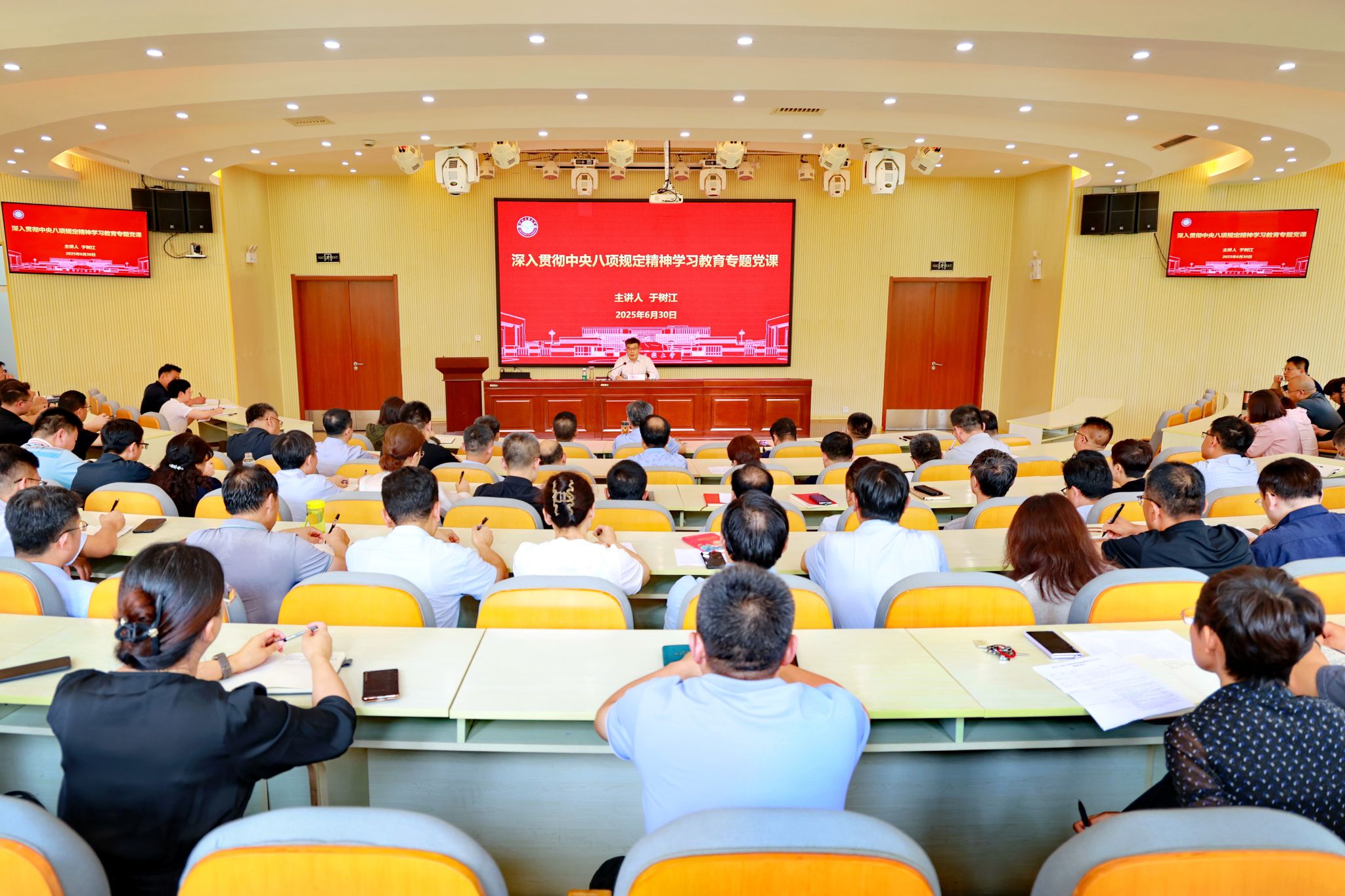 6月30日下午,学校党委书记于树江以“持之以恒贯彻落实中央八项规定精神 锤炼过硬作风 奋力推动学校高质量发展”为题,讲授深入贯彻中央八项规定精神学习教育专题党课。