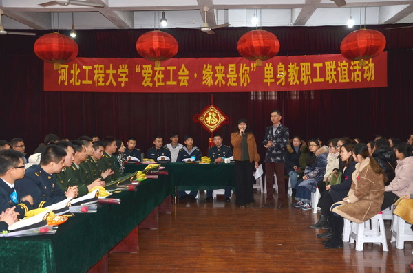 本次活动由各分工会主席担任“红娘”,以健康、文明、平等的现代交友方式为宗旨,成就美好姻缘为目标,现场还特别邀请到邯郸电视台文江老师作为嘉宾主持。活动中,大家依次就各自的基本信息及兴趣爱好作了介绍,校工会还建立了单身职工微信群,方便大家进一步联系。最终通过现场交流和“红娘”的牵线搭桥,已有多对男女达成交往意向。