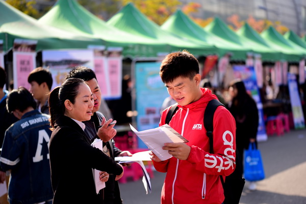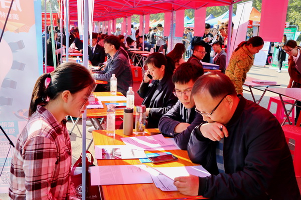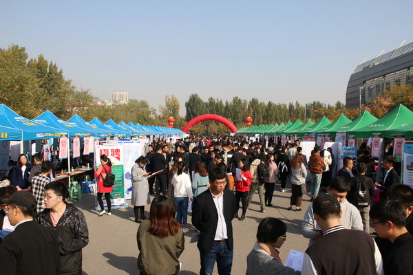 | 图为毕业生就业洽谈会现场 |