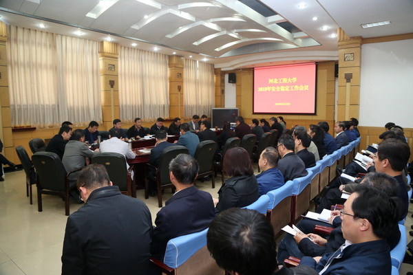 校党委书记哈明虎在讲话中肯定了2017年度学校安全稳定工作取得的成绩,指出了存在的问题。他强调,要强化政治意识,牢固树立红线意识和底线思维,把“生命至上,安全第一”始终贯穿到各项工作之中。要细化工作措施,加强安全教育与预防防范,健全隐患排查治理制度,加强重点管控,提高快速反应和应急处置能力。要深化工作责任,加大督查与考核力度,继续大力推行安全稳定网格化管理,扎实做好学校安全稳定工作。