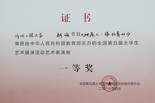 4月16日至4月21日,全国第五届大学生艺术展演活动在上海市举行。校党委常委曹庆奎带队参加活动。由学生工作部和地球科学与工程学院共同策划的朗诵作品《地质人·绿水青山》(指导教师:孙国栋、李翔、李漠)获全国一等奖和优秀创作奖,实现了我省高校在该奖项上零的突破。此外,大学生合唱团展演作品《将相和》《Colorado Trail》获声乐甲组三等奖,九州登录再获优秀组织奖。