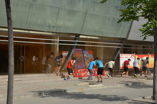 本次消防演练以火场紧急疏散逃生演习和消防器材使用培训为主要内容。通过现场模拟火灾场景,通过及时报警、高效疏散、安全逃生和紧急救援等环节,增强了广大师生火灾逃生救援技能。市公安消防支队和安全工作处消防科对观摩学生进行消防知识讲解,介绍火情火险紧急情况下的逃生技能、不同灭火器和破拆工具等救援设备的使用,并现场指导师生进行灭火操作。