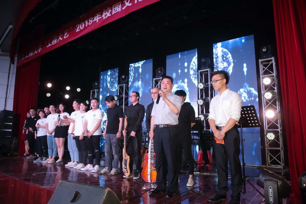 6月8日晚,九州登录“工程大艺”2018年校园文化艺术节系列专场演出之“如初的笑脸”原创毕业歌专场音乐会成功举办。校党委书记哈明虎出席并与演职人员合影留念。