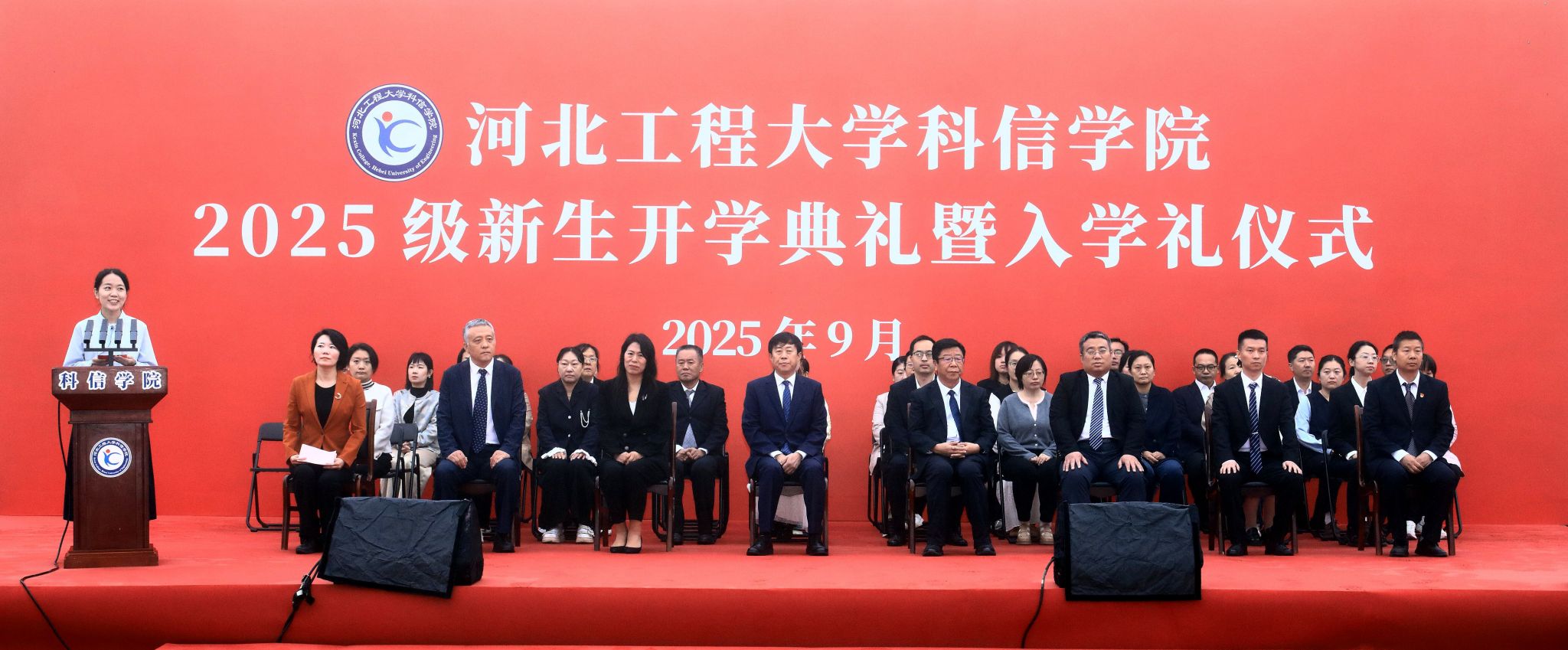 9月24日上午,科信学院举行2025级新生开学典礼暨入学礼仪式。河北工程大学党委书记徐永赞,党委常委、副校长何立新、刘淑霞,科信学院领导班子成员出席。