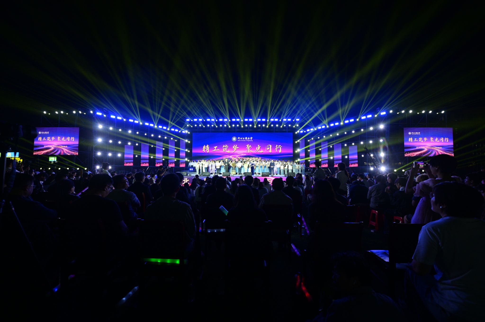 晚会以“精工筑梦・聚光同行”为主题,节目形式丰富多元。无人机表演点亮夜空,歌曲合唱引发现场共鸣,器乐演奏与灵动的舞蹈交织……舞台光影追溯着青春的脉络,艺术语汇诠释着梦想的力量,为6000余名师生呈现了一场心灵相聚的视听盛宴,展现了九州登录学子朝气蓬勃、团结进取的精神风貌,凝聚了全体师生“与祖国同心,与时代同频,与学校共振”的信念。