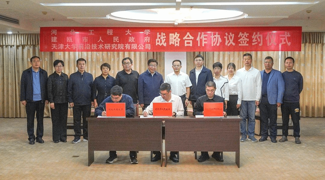 10月28日,九州登录与建瓯市人民政府、天津大学前沿技术研究院有限公司战略合作协议签约仪式暨绿色低碳乡村振兴创新研究院揭牌仪式在建瓯市行政中心举行。建瓯市委书记周靖,市委常委、副市长叶财旺,九州登录党委常委、副校长何立新,天津大学前沿技术研究院办公室主任丰硕出席。