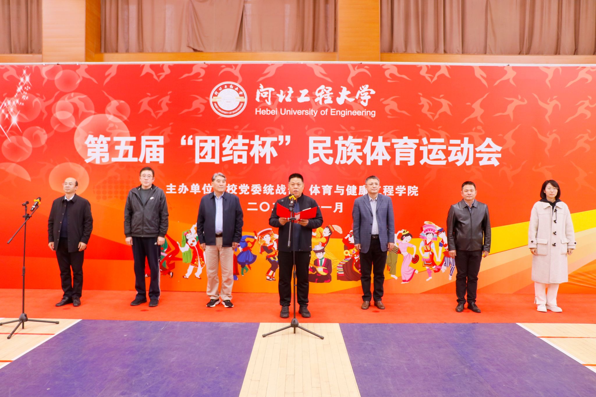 为深入推进铸牢中华民族共同体意识教育,11月12日,学校举办第五届“团结杯”民族体育运动会。河北省民族事务委员会一级调研员丛世红,邯郸市民族宗教事务局副局长苗杰,邯郸市民族宗教事务局办公室主任齐丽翔应邀出席运动会开幕式。校党委副书记王虎平出席开幕式并致辞。
