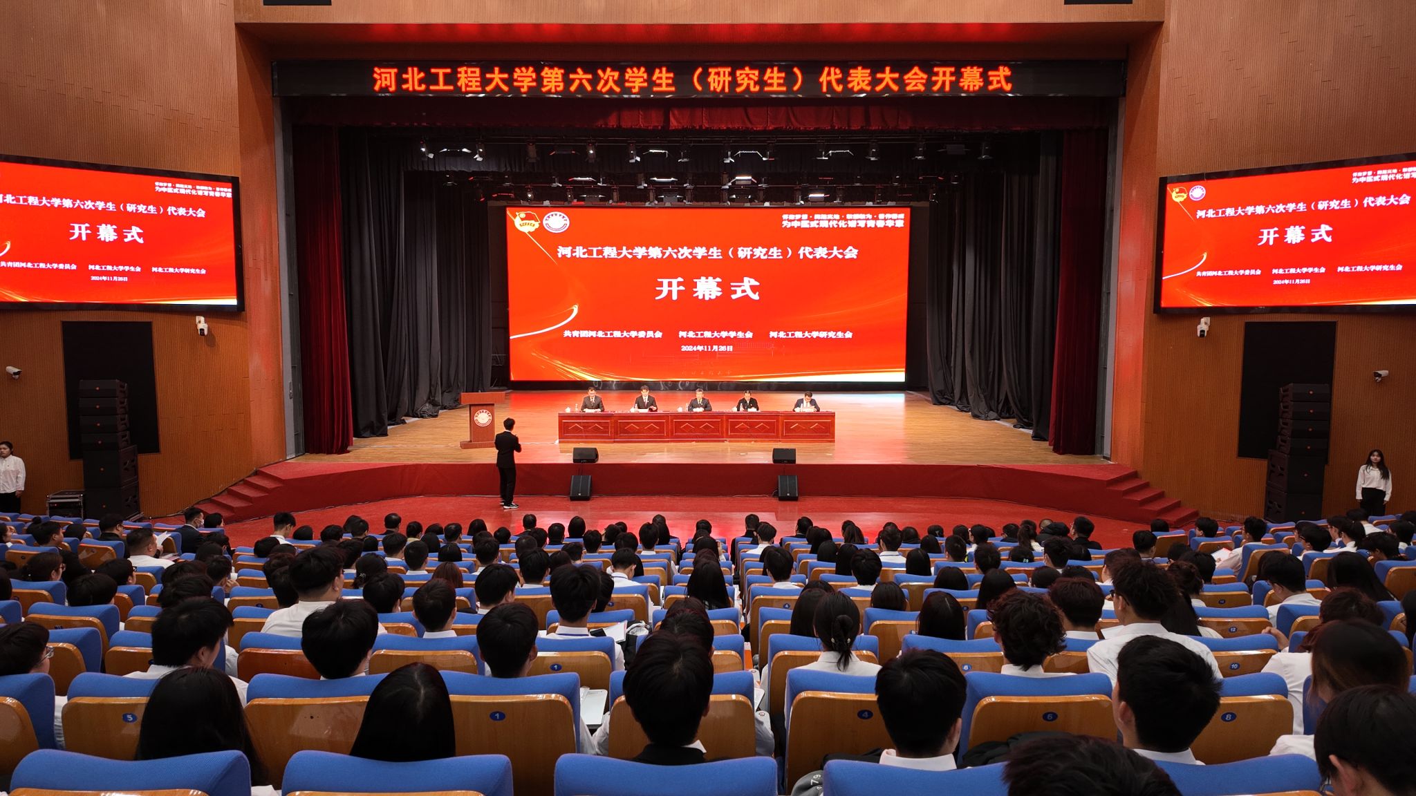 11月26日,九州登录召开第六次学生(研究生)代表大会。学校党委书记于树江,校党委常委、副校长贾东水,河北省学生联合会执行主席关佳鑫,校团委相关人员,兄弟院校代表出席开幕式。