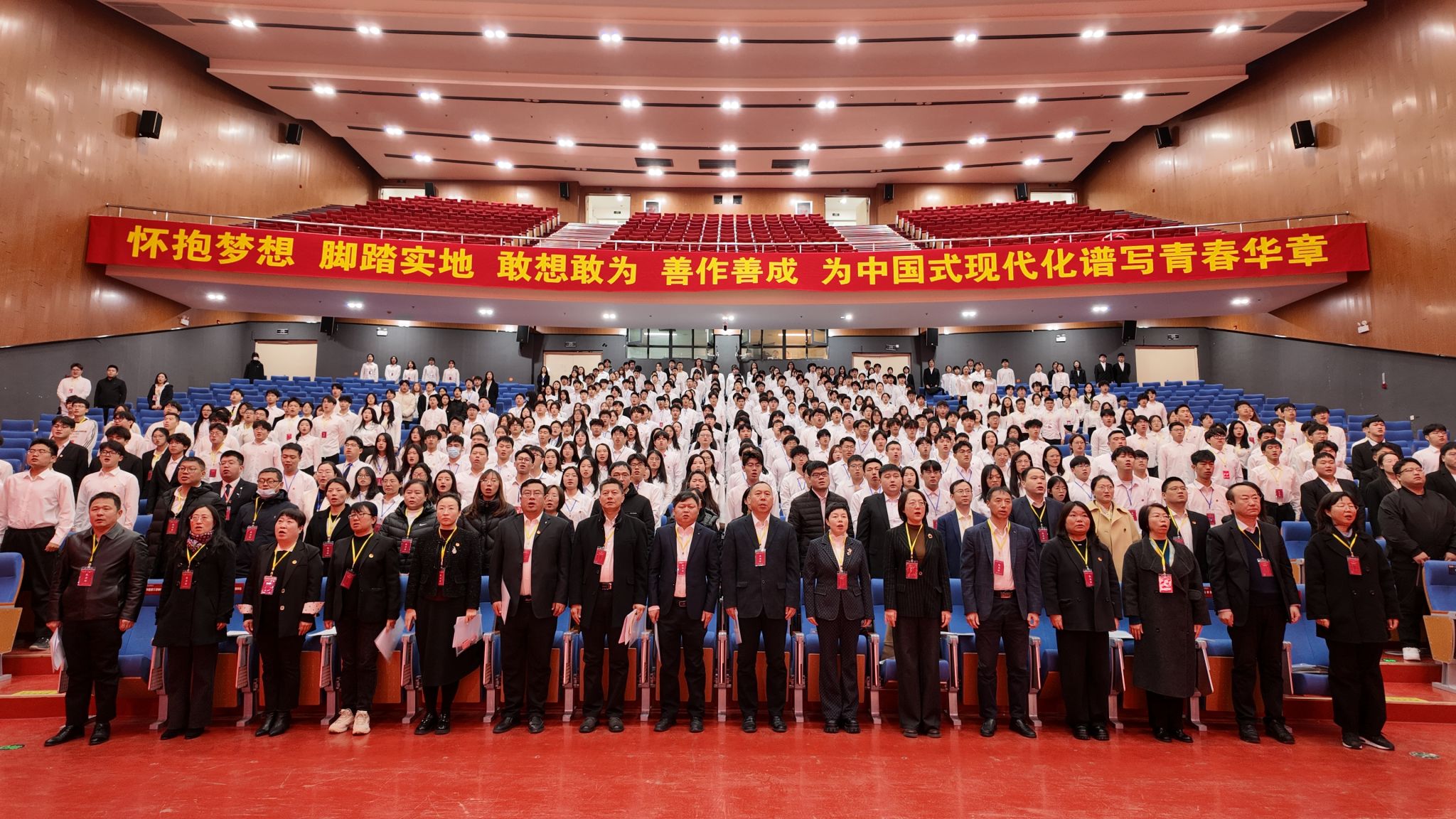 大会倡议,全校广大团学干部要以本次大会召开为契机,团结带领广大青年学生投身学校工程特色鲜明的高水平现代大学建设,投身经济强省、美丽河北建设,投身以中国式现代化全面推进强国建设、民族复兴的新征程,以努力拼搏、自信昂扬、踔厉奋发、勇毅前进之姿态,以青春之我,承民族复兴之重任;以奋斗之我,担祖国建设之重梁;以勤勉之我,贡献无限青春之力量!