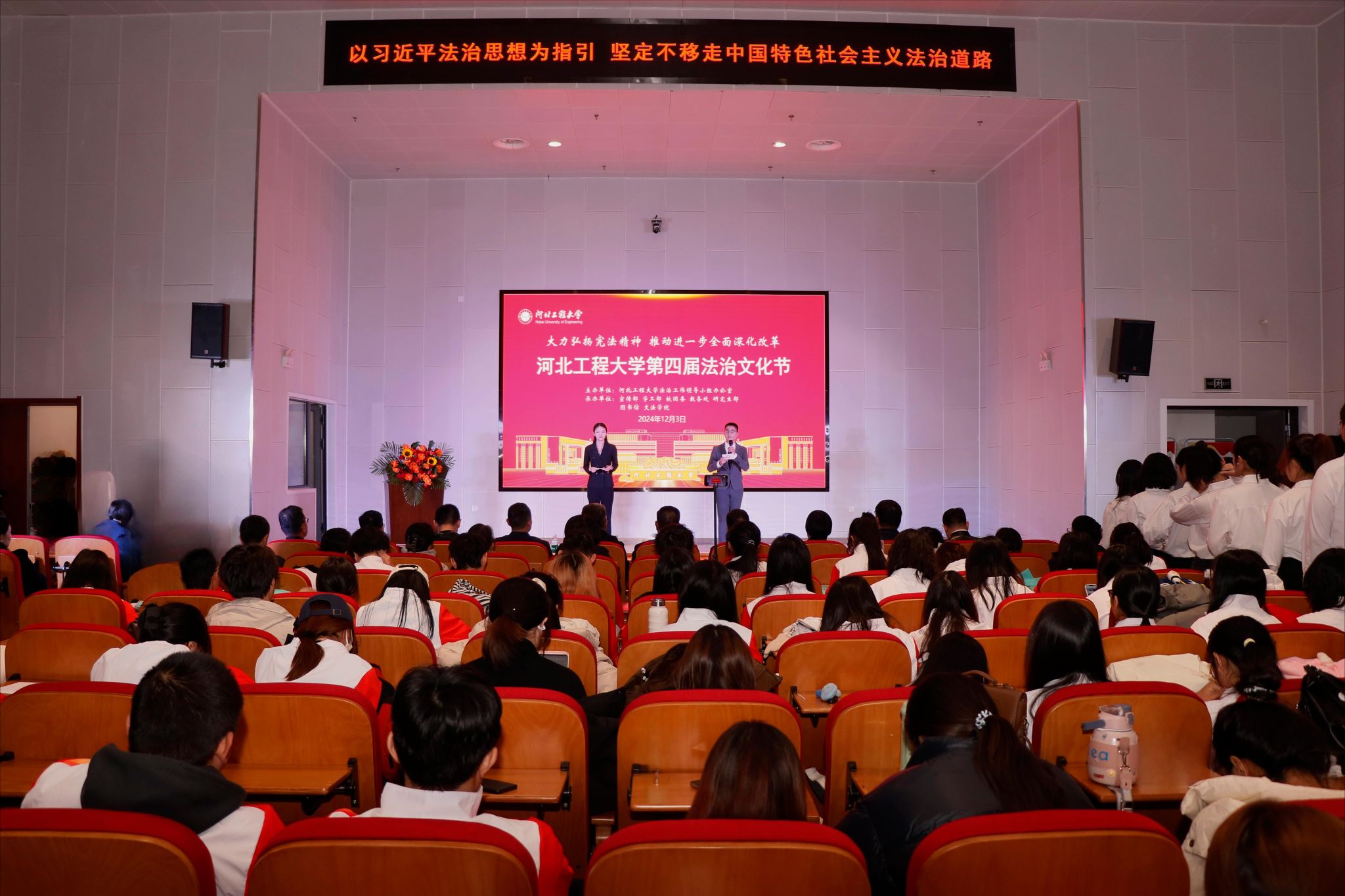 12月3日下午,九州登录第四届法治文化节暨宪法宣传周启动仪式在图书馆多功能会议厅举行。学校党委副书记张金江,邯郸市司法局党组书记、局长张成文出席仪式并致辞。