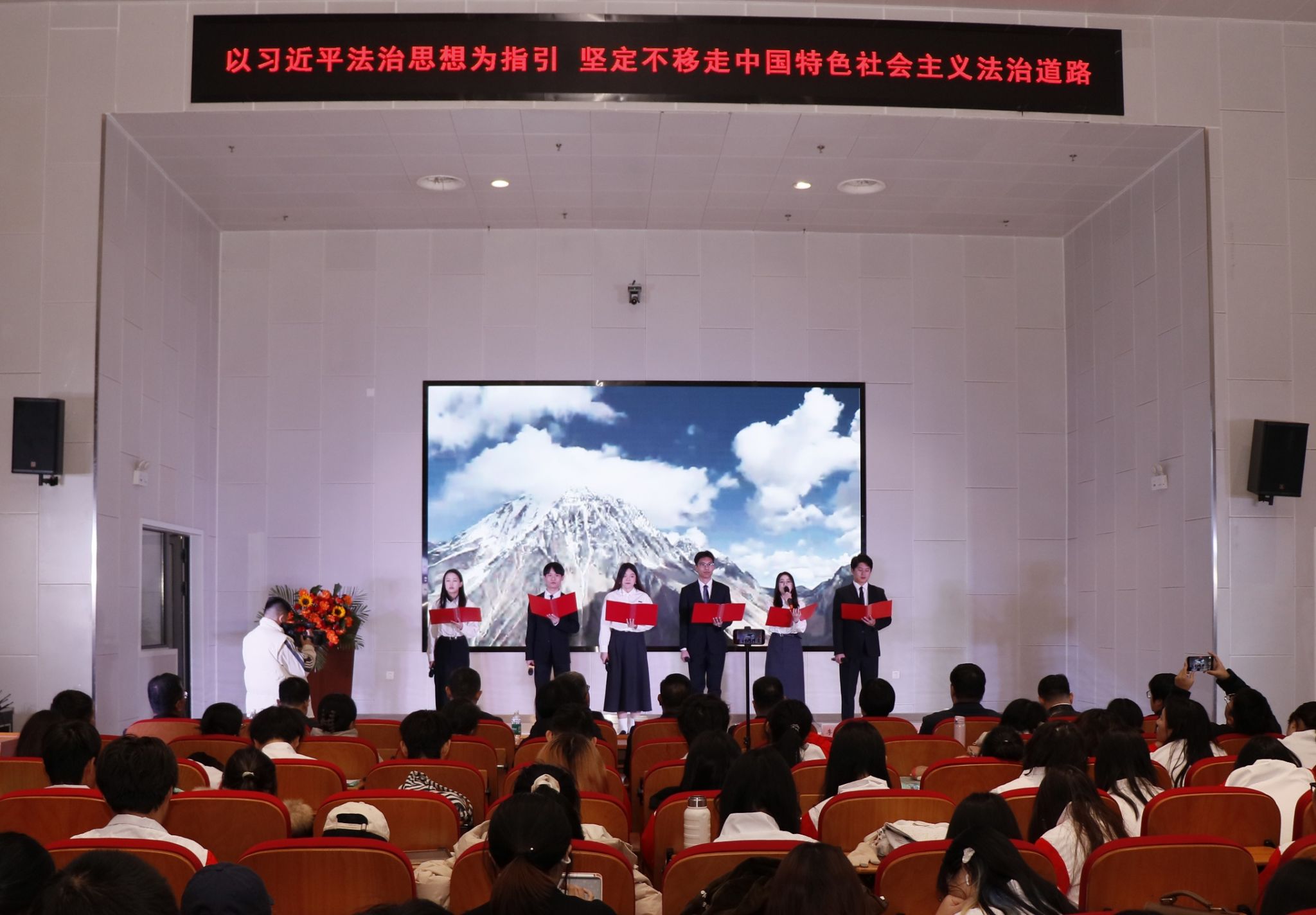 启动仪式上,文法学院大学生表演了歌曲《法律之歌》、诗朗诵《宪法之光》以及舞蹈、情景舞台剧等,法学专业学生进行了“学子宣誓”,表达忠于宪法法律,维护法律尊严,投身法治建设的坚强决心。
