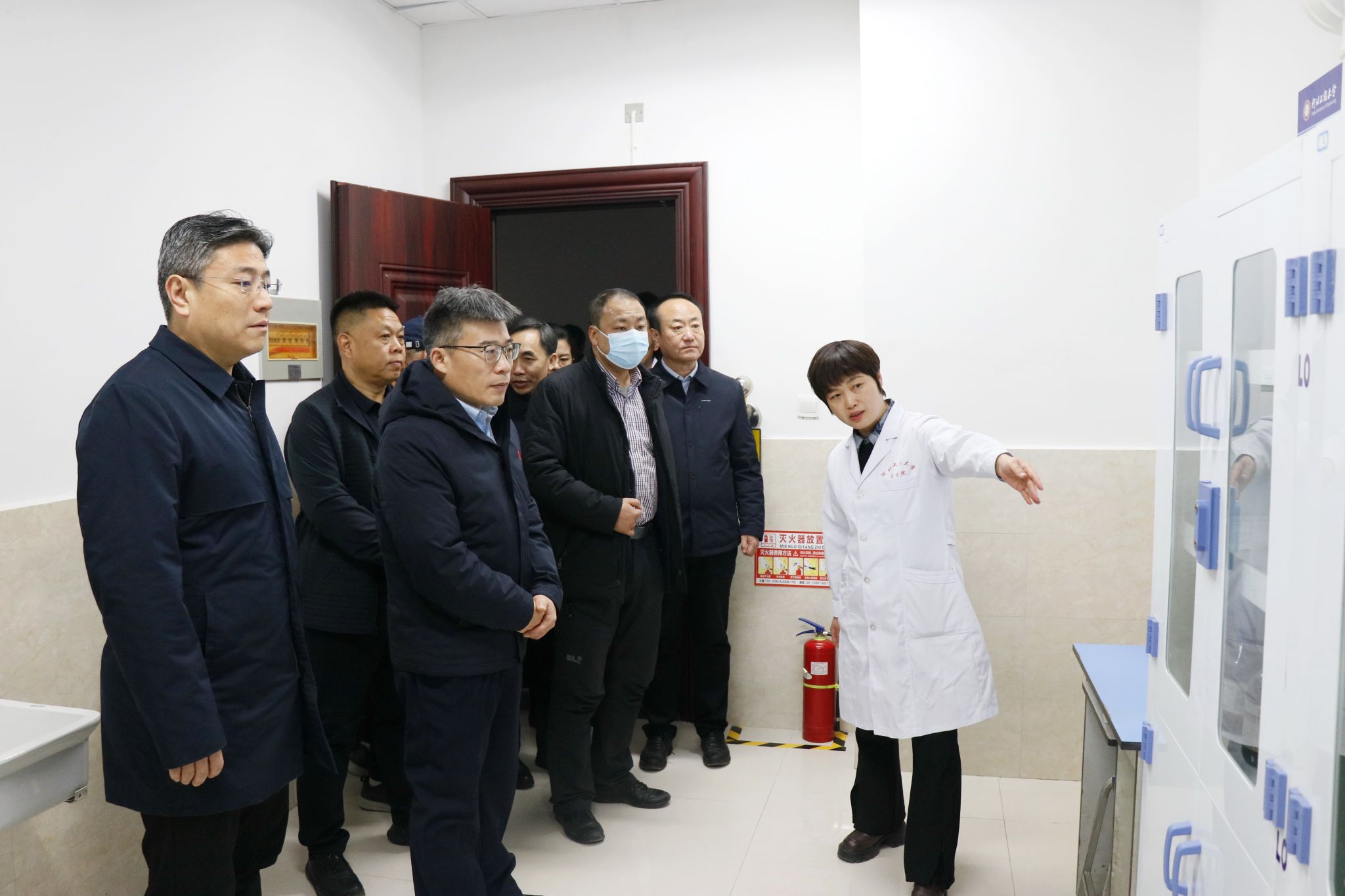 图为校领导在医学院实验室检查实验器材、药品试剂安全