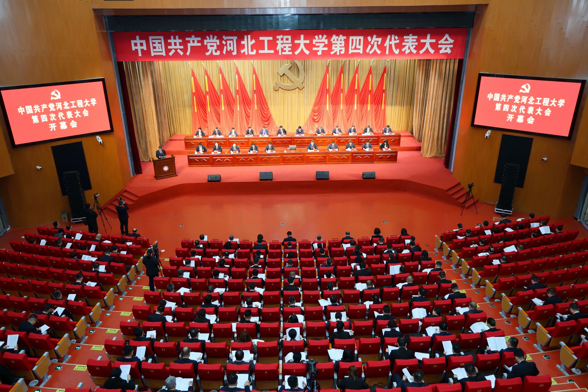 仲春时节,风暖物新。3月6日上午,河北工程大学会议服务中心内气氛庄严热烈,金黄色的中国共产党党徽悬挂在主席台正中,在两侧红旗的映衬下熠熠生辉。8时30分,中国共产党河北工程大学第四次代表大会在雄壮的国歌声中开幕。来自学校各单位(部门)的177名师生代表齐聚一堂,带着全校师生的重托与期盼,共同擘画学校内涵式高质量发展新蓝图。