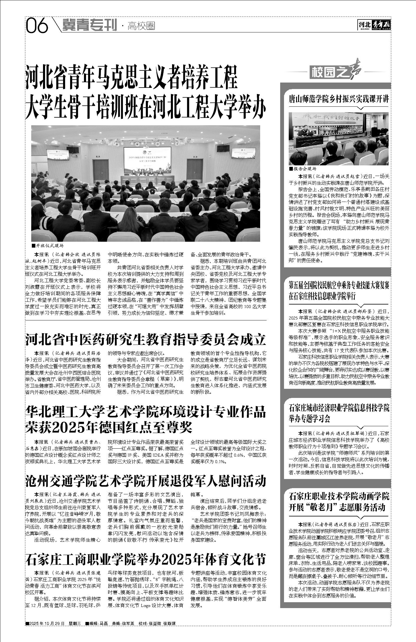 10月29日,《河北青年报》第6版以《河北省青年马克思主义者培养工程大学生骨干培训班在河北工程大学举办》为题,报道本次活动。以下为报道原文: