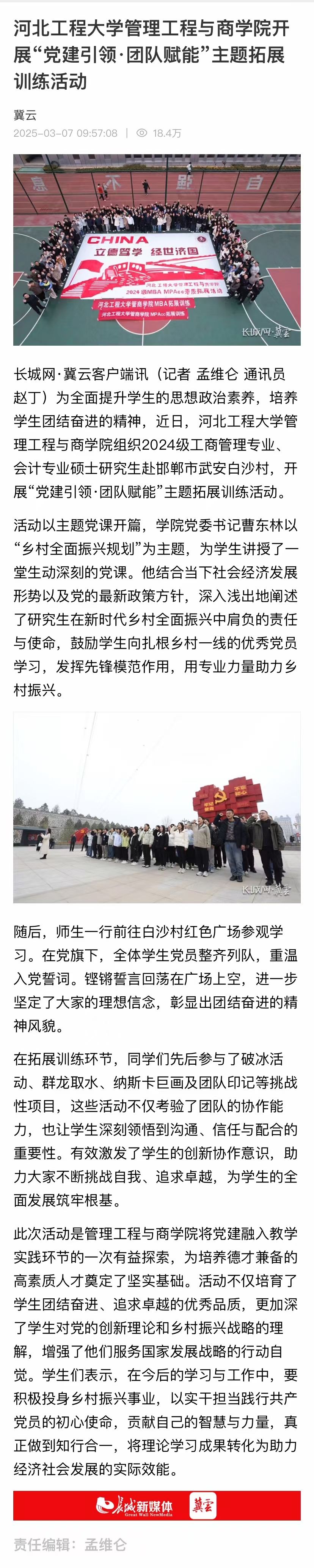 河北工程大学管理工程与商学院开展“党建引领·团队赋能”主题拓展训练活动