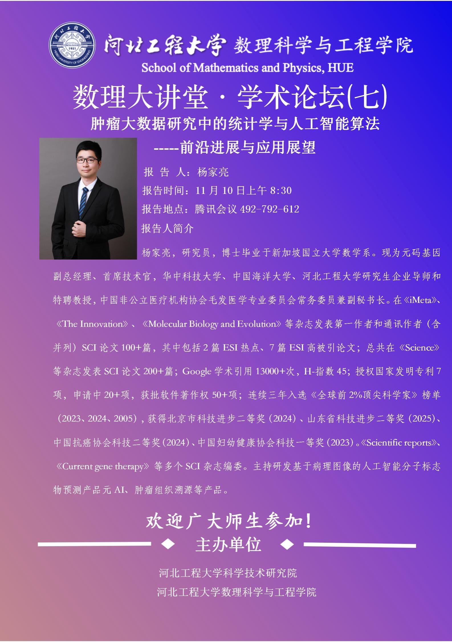 数理学院-肿瘤大数据研究中的统计学与人工智能算法—前沿进展与应用展望